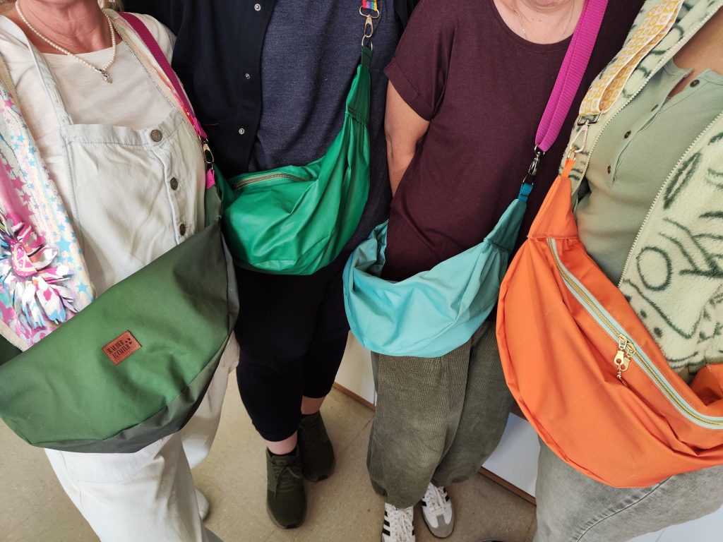 Mit Chiara Cremon werden am Samstag, dem 25.04.2026 aus alten Werbebannern XL-Crossbody-Bags genäht. Alle Materialien werden gestellt, Nähkenntnisse sind nicht erforderlich.